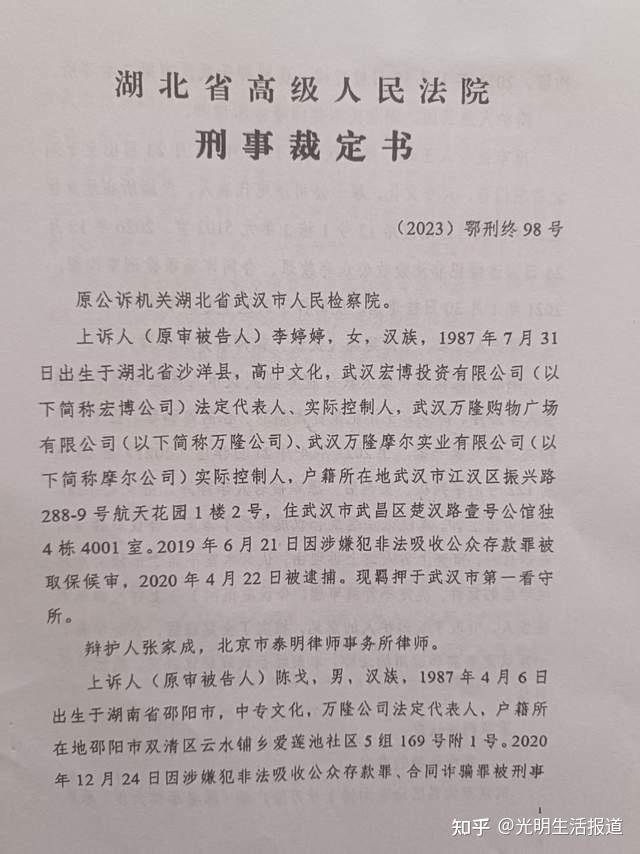 那时,万隆广场估值30多亿,年销售额7亿多,每年净利润数千万,呈现一片欣欣向荣的景象,可面对利益集团的恶意操纵局面很快失控。2020年4月22日,李婷婷因涉嫌犯非法吸收公众存款罪被武昌公安分局逮捕。2023年4月21日,武汉中级人民法院下达了(2021)鄂01刑初122号判决书,认定李婷婷非法集资4.2多亿,犯集资诈骗罪,判决无期徒刑;犯拒不执行判决、裁定罪,判处有期徒刑六年,剥夺政治权利终身,并处没个人全部财产。同时,万隆公司法人陈戈、摩尔公司法人王迅也分别被判12年半和七年。2023年6月12日,湖北省高级人民法院下达了终审裁定书,维持了原判。