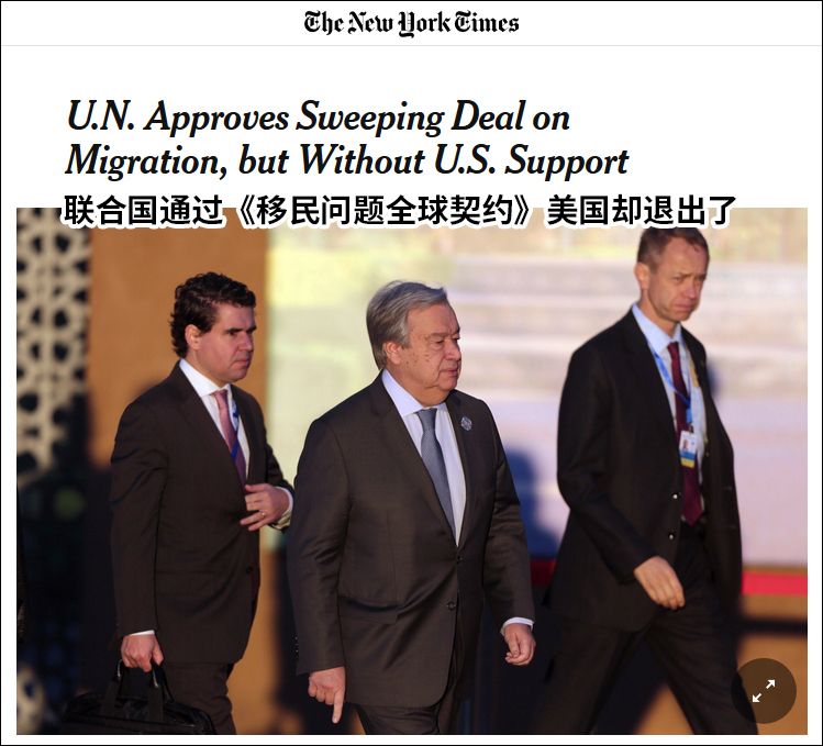 "我们不是要建立一个新的关于移民问题的权力秩序"古特雷斯谈道,"我们正在树立的是,让全球关注移民人权的责任感。"